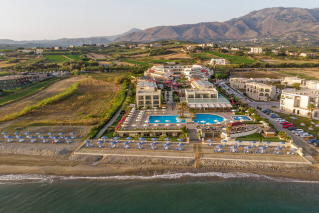 - Localizare: Hotelul este situat pe plajă, între Chania și Rethymno, în apropiere de satul Georgioupolis.