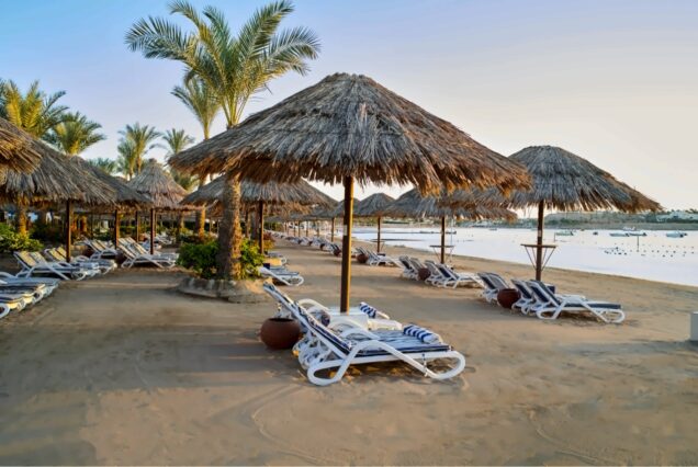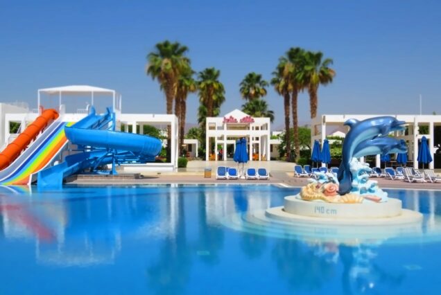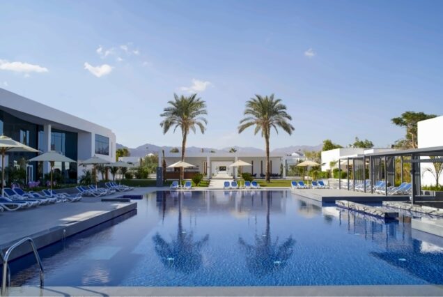 Un hotel frumos, cu o zonă verde întinsă, situat în centrul stațiunii Naama Bay.