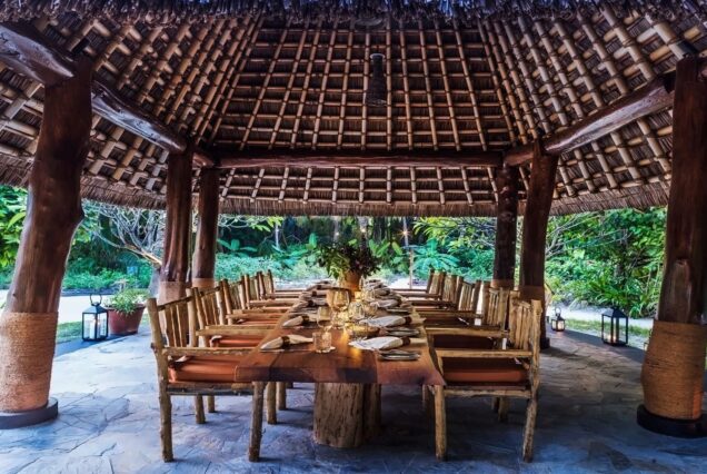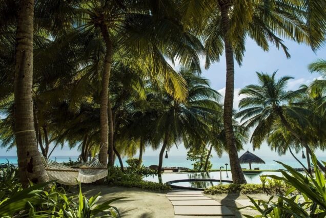 - Vile Elegante: Cazarea constă în vile luxoase, deasupra apei (Water Villas) sau pe plajă (Beach Villas), cu acoperișuri de paie și tavane înalte. Toate vilele beneficiază de un serviciu de concierge personalizat disponibil 24 de ore din 24 și două biciclete alocate fiecărei vile pentru explorarea insulei. Unele opțiuni includ piscine private sau zone extinse de plajă privată.
